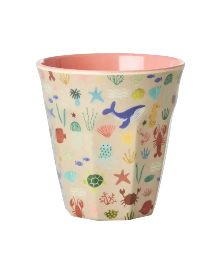 Rice Medium Melamine Cup - Coral Ocean Print
