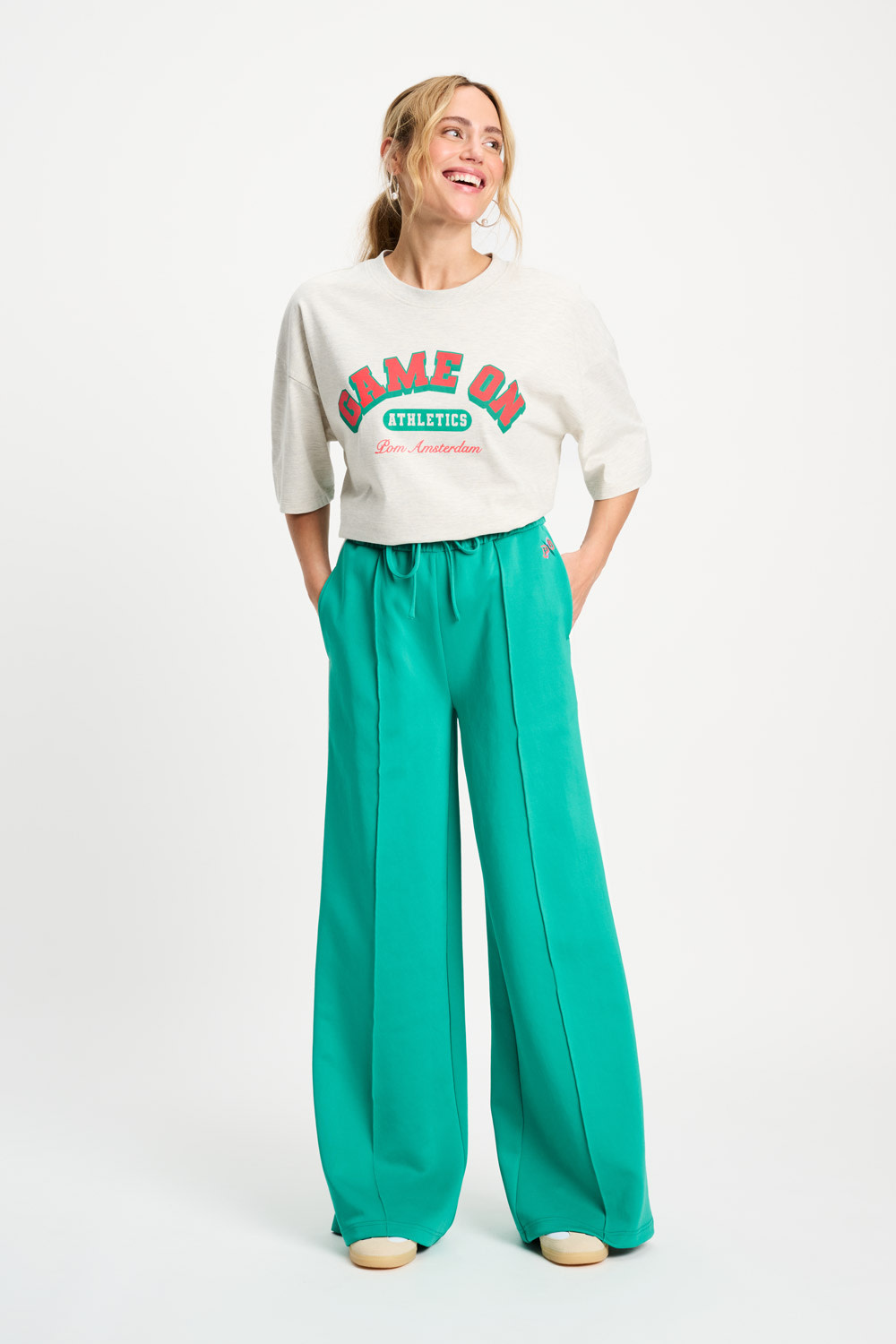 Pom Amsterdam TRACKPANTS - Stripe Wander Green